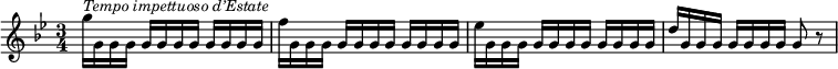 | 3 – Presto en sol mineur à trois temps | Ah, ses craintes n’étaient que trop vraies, Le ciel tonne et fulmine et la grêle Coupe les têtes des épis et des tiges |