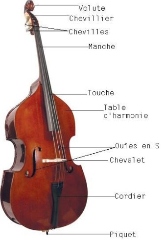 La contrebasse est un instrument grave de la famille des instruments à cordes. Avant l’octobasse, la contrebasse est le plus grand (entre 1,60 m et 2,05 m) et le plus grave instrument de cette famille. À la différence des autres instruments de la famille (violon, alto, violoncelle), qui s’accordent en quintes, elle s’accorde aujourd’hui en quartes mi, la–, ré et sol., essentiellement pour des raisons de facilité de doigté. Elle possède généralement quatre cordes. Mais on peut trouver parfois une cinquième corde de do (école française), accordée une tierce sous le mi, indispensable pour jouer certaines partitions telles qu’elles sont écrites, sans avoir à transposer. Elle peut se jouer en frottant les cordes avec l’archet (arco) ou en les pinçant avec les doigts (pizzicato). La contrebasse est très utilisée en musique classique au sein des orchestres symphoniques, et en musique contemporaine. En jazz, elle fait partie de la section rythmique. La contrebasse appartient à la famille du violon, L’apparition de la contrebasse remonterait à 1620, succédant au violone et à la contrebasse de viole, mais elle ne fut introduite dans l’orchestre qu’au milieu du XVIIe siècle. Les essences de bois utilisées pour la construction des contrebasses sont variables, mais on retrouve généralement de l’épicéa pour la table, de l’érable, de l’ébène pour la touche. Certains contreplaqués sont parfois utilisés, généralement pour les instruments d’étude. On trouve aussi des contrebasses récentes en fibre de carbone.