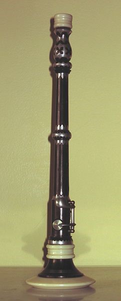 + le fût ou corps, légèrement conique, est percé de 6 ou 7 trous (ou plus avec l’ajout de clefs) en façade. Il est tourné dans un bois dur, le buis, le poirier, le gaïac, le palissandre ou l’ébène, et peut être ornementé de cerclages en étain, de corne, de bois différents, ou même d’ivoire.