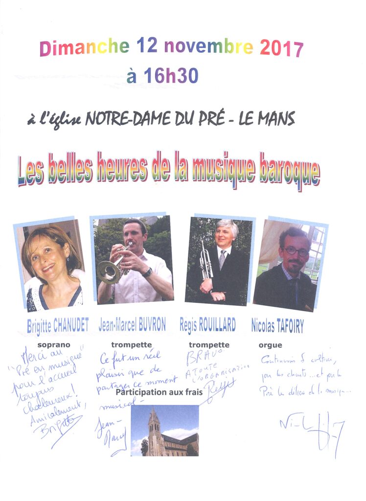 Trio Chant, Trompette et Orgue Brigitte CHANUDET, soprano Brigitte CHANUDET débute ses études musicales au Conservatoire d’Orléans. Sa formation est d’abord pianistique et elle obtient le Diplôme de fin d’Études dans cette discipline. Elle réalise ensuite ses études de chant à l’Ecole nationale de Musique et de Danse de Chartres où elle reçoit en 1998…