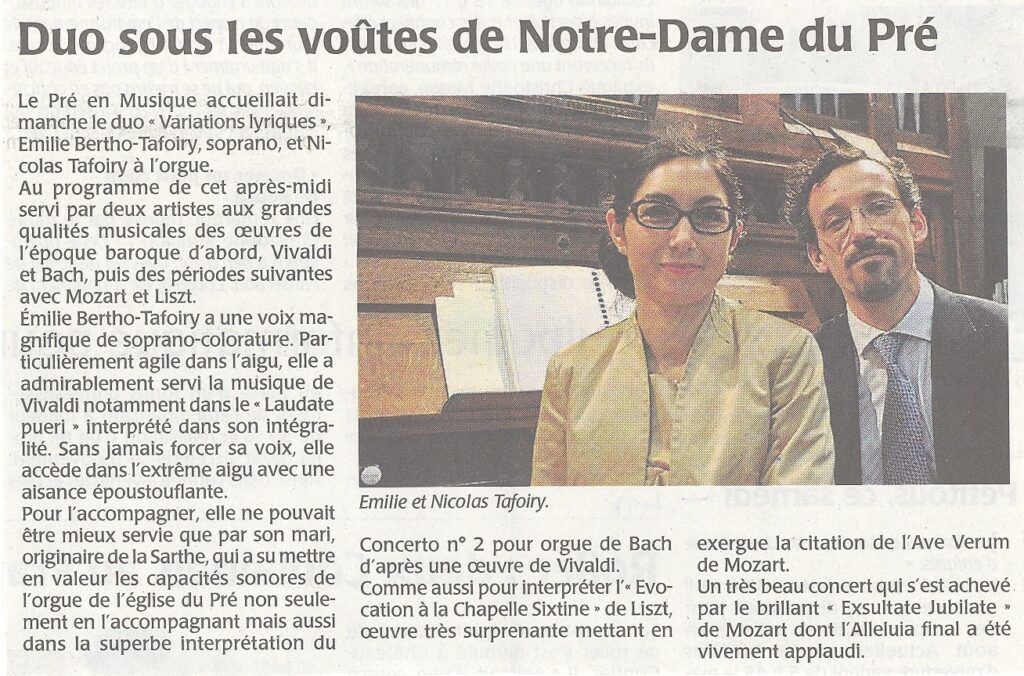 Stéphanie et Sabine Sabine REVAULT d’ALLONNES (soprano lyrique) a participé au concert du 10 juin 2018 (20e saison) – Duo Chant et Piano Sabine REVAULT d’ALLONNES a commencé son parcours musical en étudiant d’abord le violon en France avec Amy Flammer, Suzanne Gessner, Alexis Galpérine ainsi que Norbert Brainin, premier violon du Quartet Amadeus. Elle…