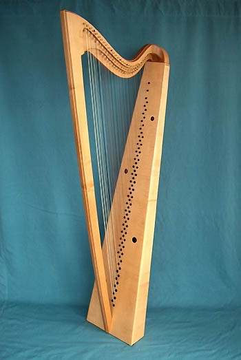 La harpe est l’un des principaux instruments employés au Moyen-Âge et on la voit souvent représentée sur des tableaux ou des gravures, ce qui nous permet de les reproduire. C’est un petit instrument de moins d’un mètre qui possède une vingtaine de cordes et qui est utilisé du XIIe au XVe siècle. Elle est diatonique, c’est-à-dire qu’elle ne possède qu’une seule rangée de cordes et qu’il n’y a pas d’altérations possibles, sauf en raccourcissant les cordes soit à leur base soit au niveau de la console en effectuant une pression avec la main. Le répertoire adapté à cet instrument est peu connu, car la musique instrumentale de l’époque n’était quasiment pas notée. C’est donc grâce à un travail de recherche et d’expérimentations que nous définissons progressivement (ou réinventons peut-être ?) la musique qu’il était possible de jouer.