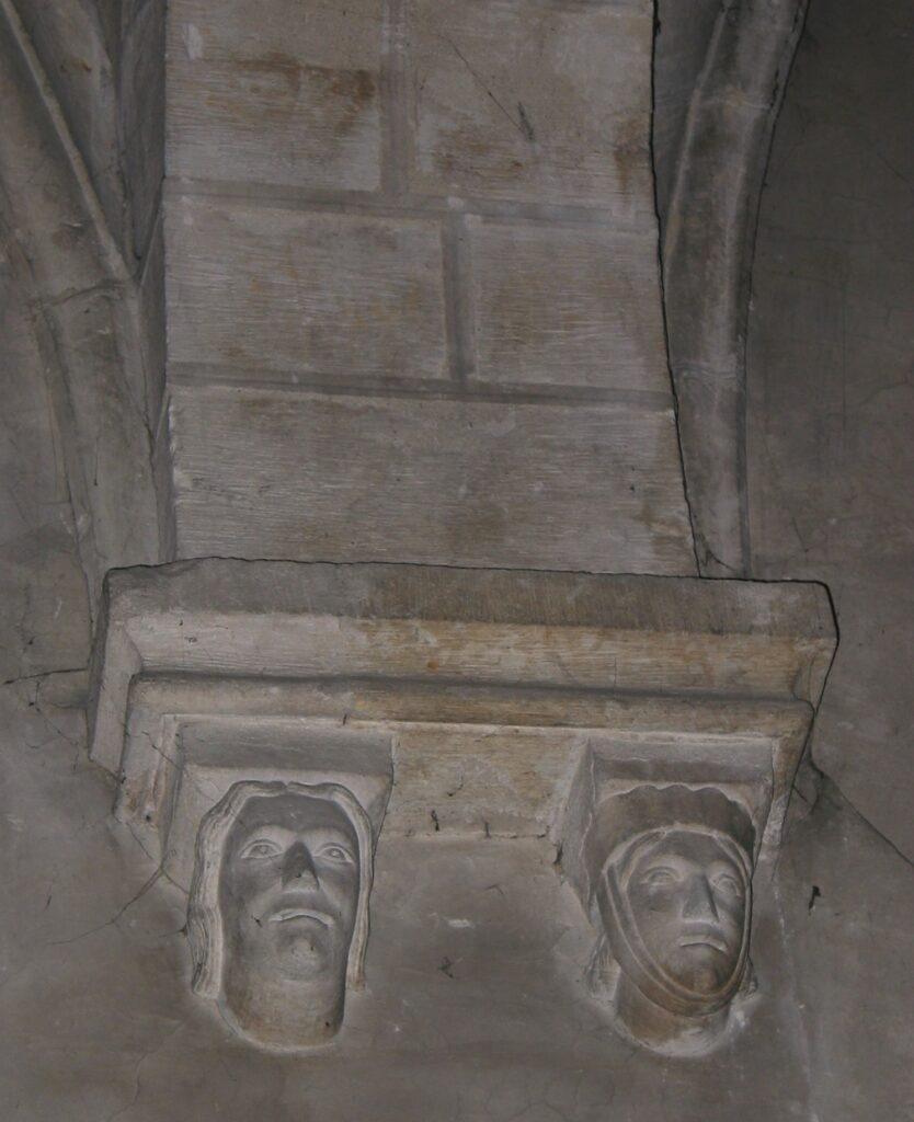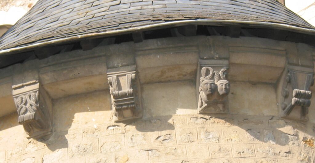 Les voûtes de la nef reposent sur des modillons, certains à têtes humaines (simple, double ou triple).