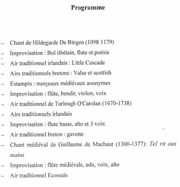 - Avril 2008, création d’un spectacle médiéVal.