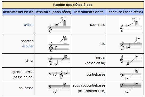 La flûte à bec est un instrument à vent de la famille des bois. Comme nombre d’autres instruments, elle se décline en plusieurs tailles. Les plus anciennes flûtes à bec remontent à la Préhistoire. Cet instrument comporte huit trous de jeu, dont un manipulé par le pouce pour permettre l’émission des octaves aigües. Très utilisé dans la musique savante profane et religieuse depuis le XVe siècle, cet instrument connut une éclipse relative au XIXe siècle et jouit d’un regain de popularité dès les premières années du XXe siècle. Largement diffusé en Allemagne et en Angleterre puis en Europe grâce à sa production de masse en bakélite dès les années 1940, cet instrument a été associé pendant de longues années aux activités pédagogiques et scolaires de nos collèges dans les années cinquante, ce qui n’est plus le cas actuellement. Elle a été rayée des programmes d’Éducation musicale depuis 2008. La flûte à bec connaît à notre époque une véritable activité de concertiste professionnel et est enseignée en France à un niveau supérieur dans de nombreux conservatoires de musique. La famille se décline aujourd’hui en instruments en do et en fa.
