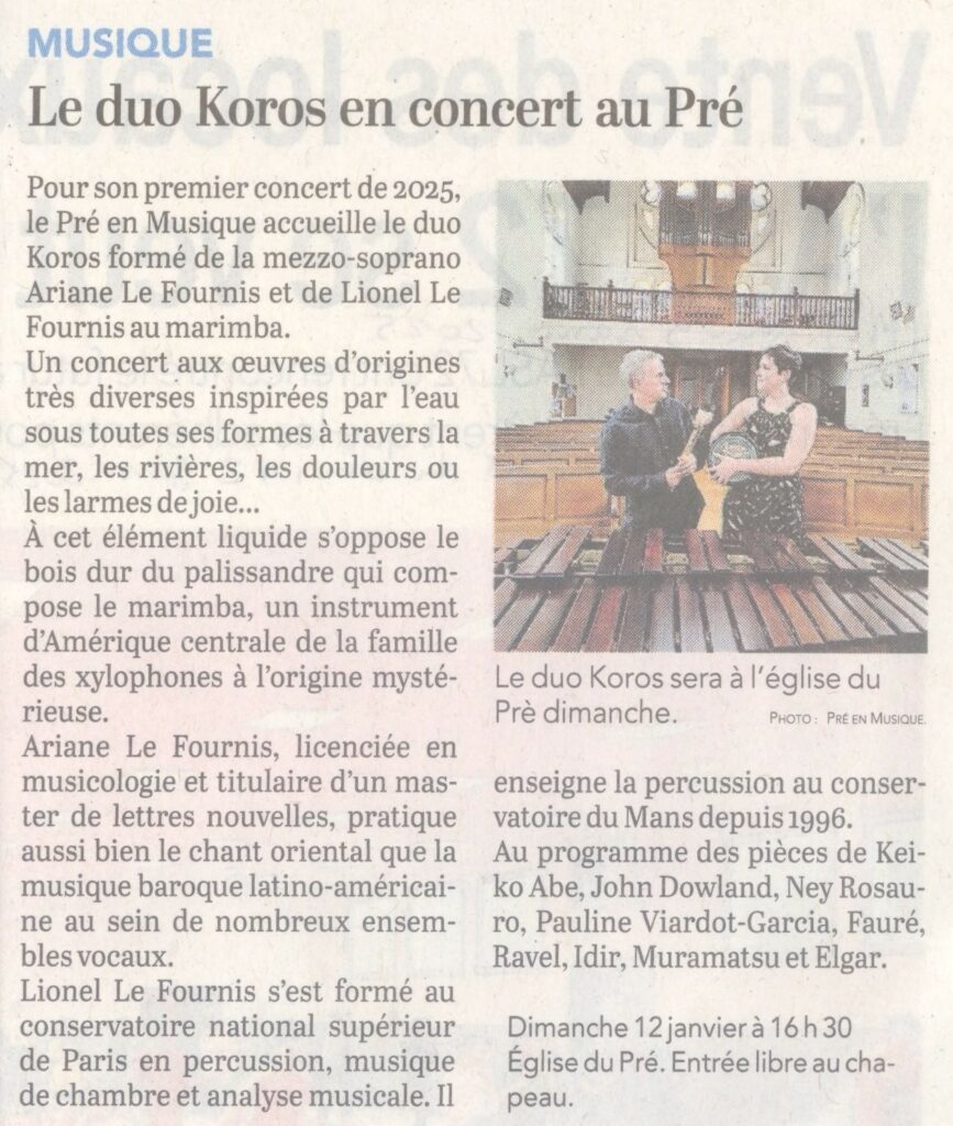 Sophie GROSEIL, alto, a participé au concert du 9 juin 2024 (26e saison) Sophie GROSEIL débute la musique au conservatoire de Toulouse avant d’intégrer le CRR de Paris dans la classe de Sabine Toutain et de Christophe Gaugué. En 2000, elle entre au Conservatoire National Supérieur de Musique de Paris (CNSM) où elle obtiendra un Prix…