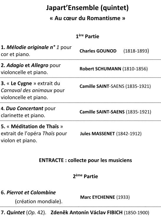 « Invitation au voyage à travers la mélodie française » Aude ESSO (soprano)Muriel SOUTY (mezzo-soprano)Maëlle DEMARTHE (piano) « Nous avons choisi de vous faire voyager avec nous à travers la mélodie française. Ce voyage nous emmènera dans des pays connus ou imaginaires, il nous transportera aussi au travers des sentiments passés ou présents et au travers de différentes…
