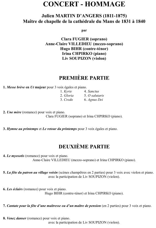 1ère Partie Titre Compositeur Arrangement Musique pour les feux d’artifices royaux Georg-Friedrich. HAËNDEL Kenny Gamble Adagio du concerto d’Aranjuez Joaquin RODRIGO Charly Villoteau Fugue en sol mineur Jean-Sébastien BACH Thierry Caens Killer tango Sonny KOMPANEK Greensleeves fantaisie Paul Nagle 2ème Partie Titre Compositeur Arrangement Concerto pour 2 trompettes Antonio VIVALDI Fred Mills Procession…