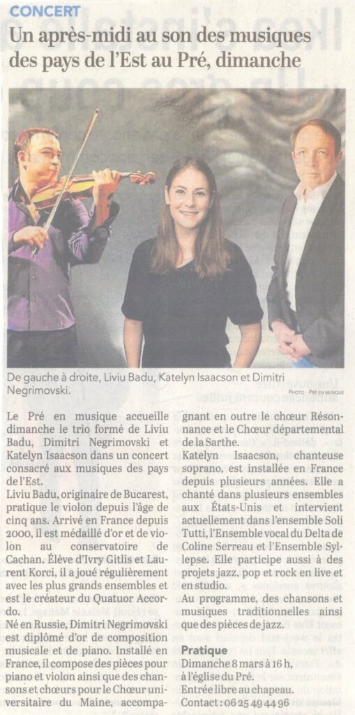Uncategorized 8 mars 2026 Paradmin1609 13 avril 2026 Maine-Libre du 6 mars 2026 Ouest-France du 3 mars 2026