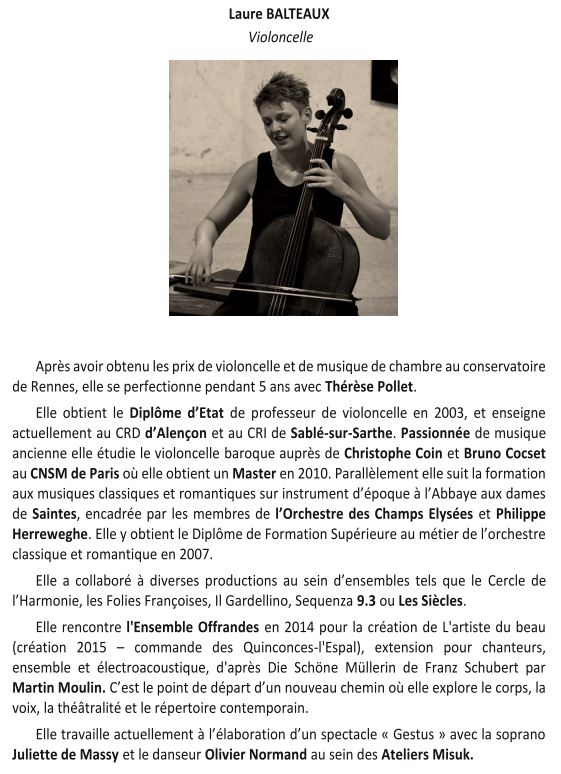 Mariane LE PENNEC (alto) a participé au concert du 4 avril 2009 (11e saison) – Quatuor « de Bercé »